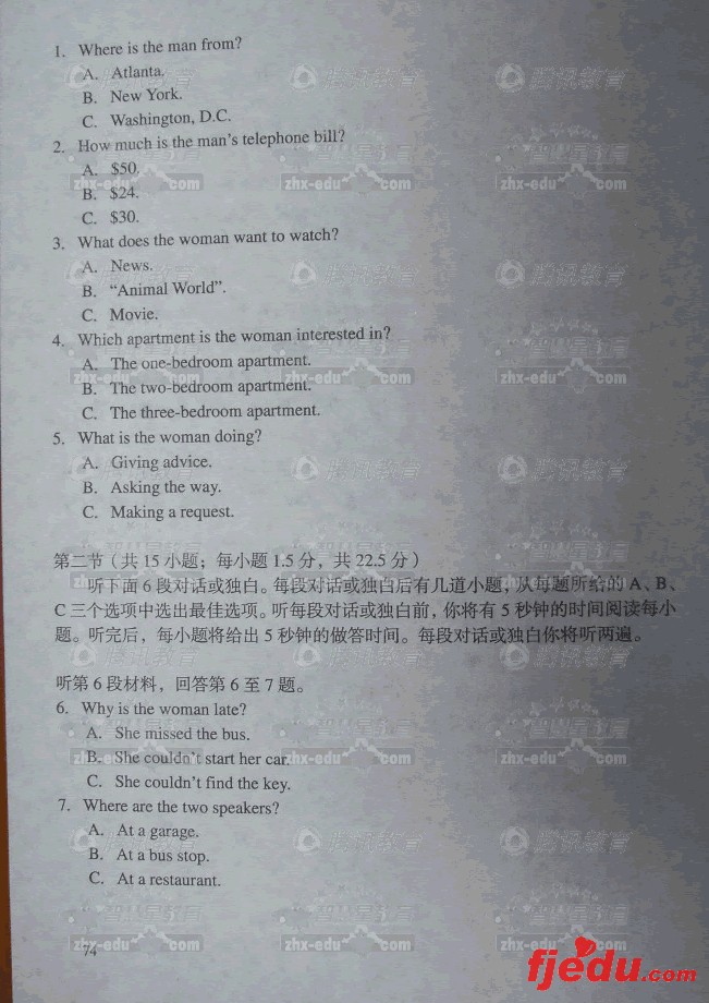 2007年北京市英语试题及答案