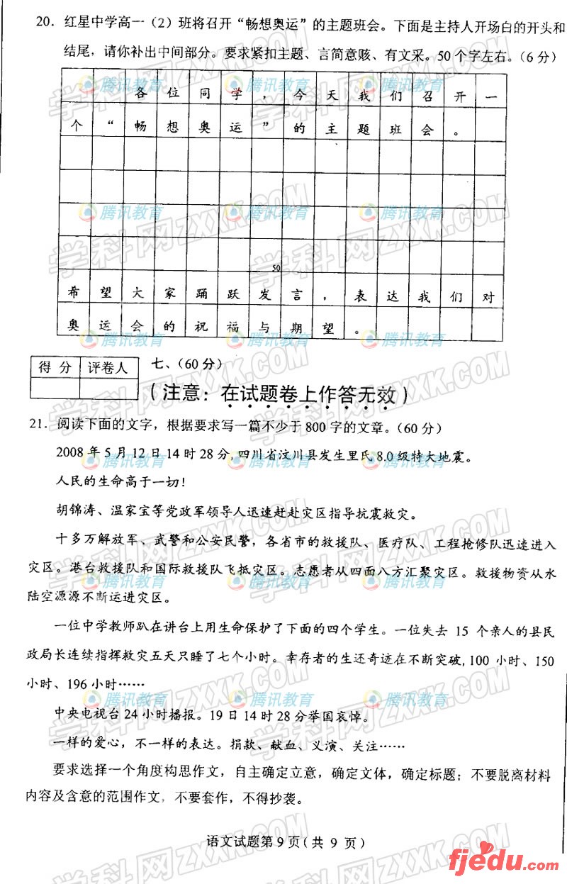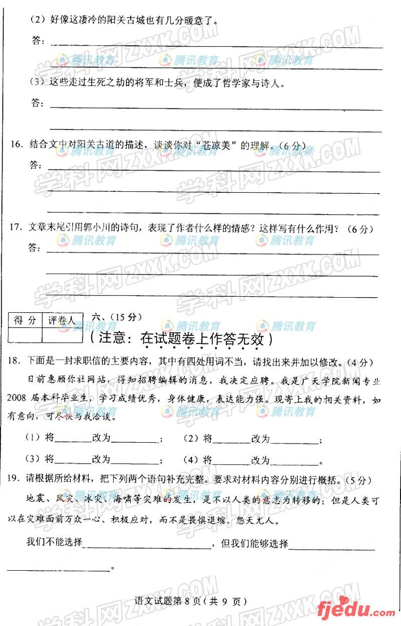 2008年高考语文试题陕西省试卷