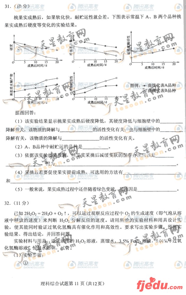 山东省2011年高考理综试题