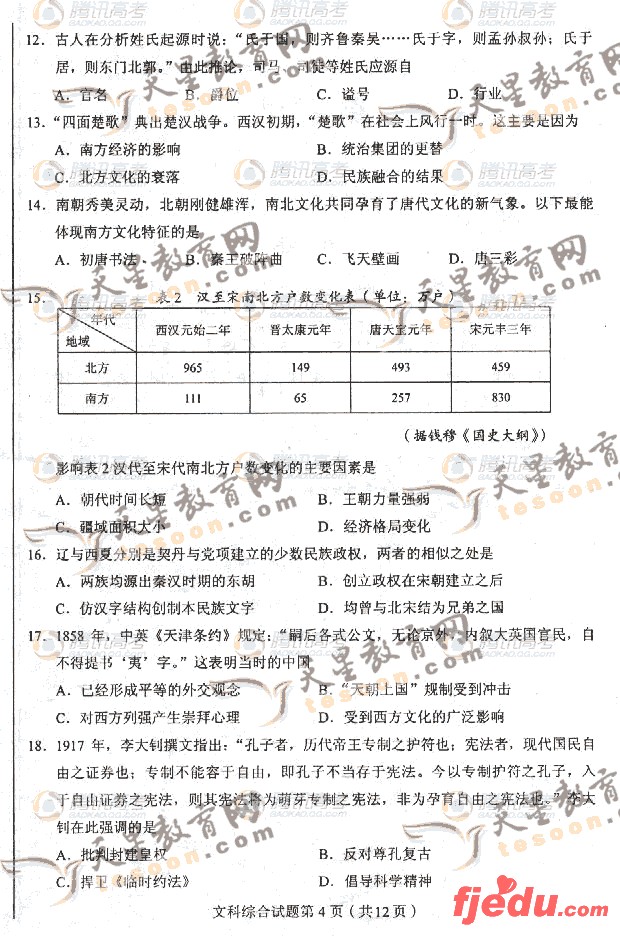 2009年全国高考卷1文综试题(河北 河南 山西 广西)