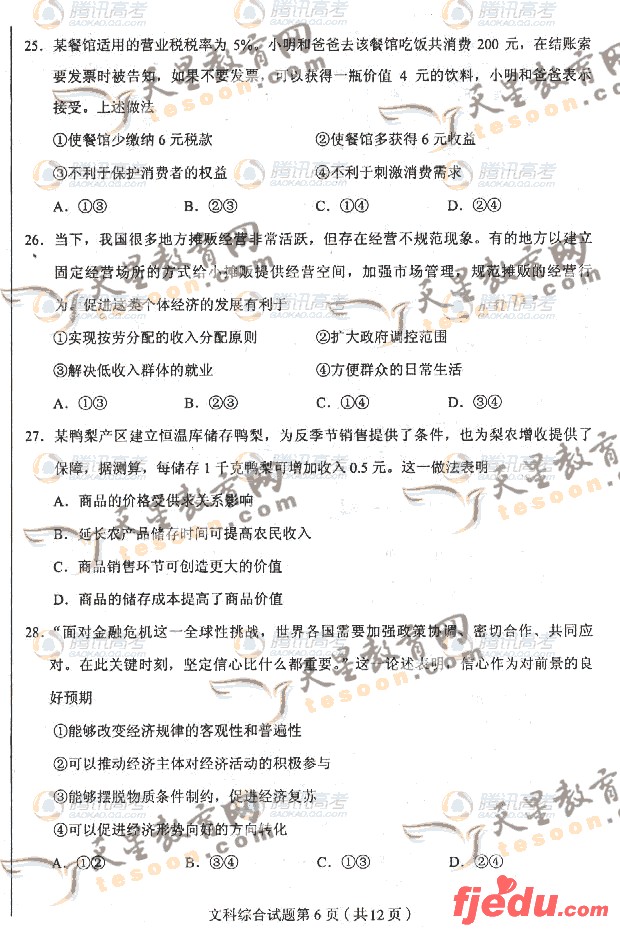 2009年全国高考卷1文综试题(河北 河南 山西 广西)