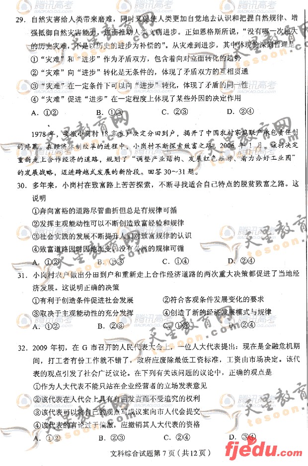 2009年全国高考卷1文综试题(河北 河南 山西 广西)
