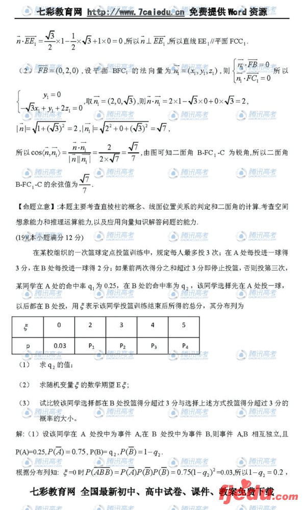 江西2011年高考理科数学试题