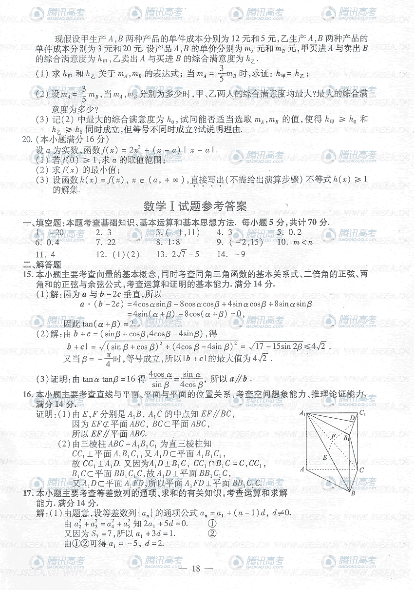 2016江苏高考试题及答案及时发布