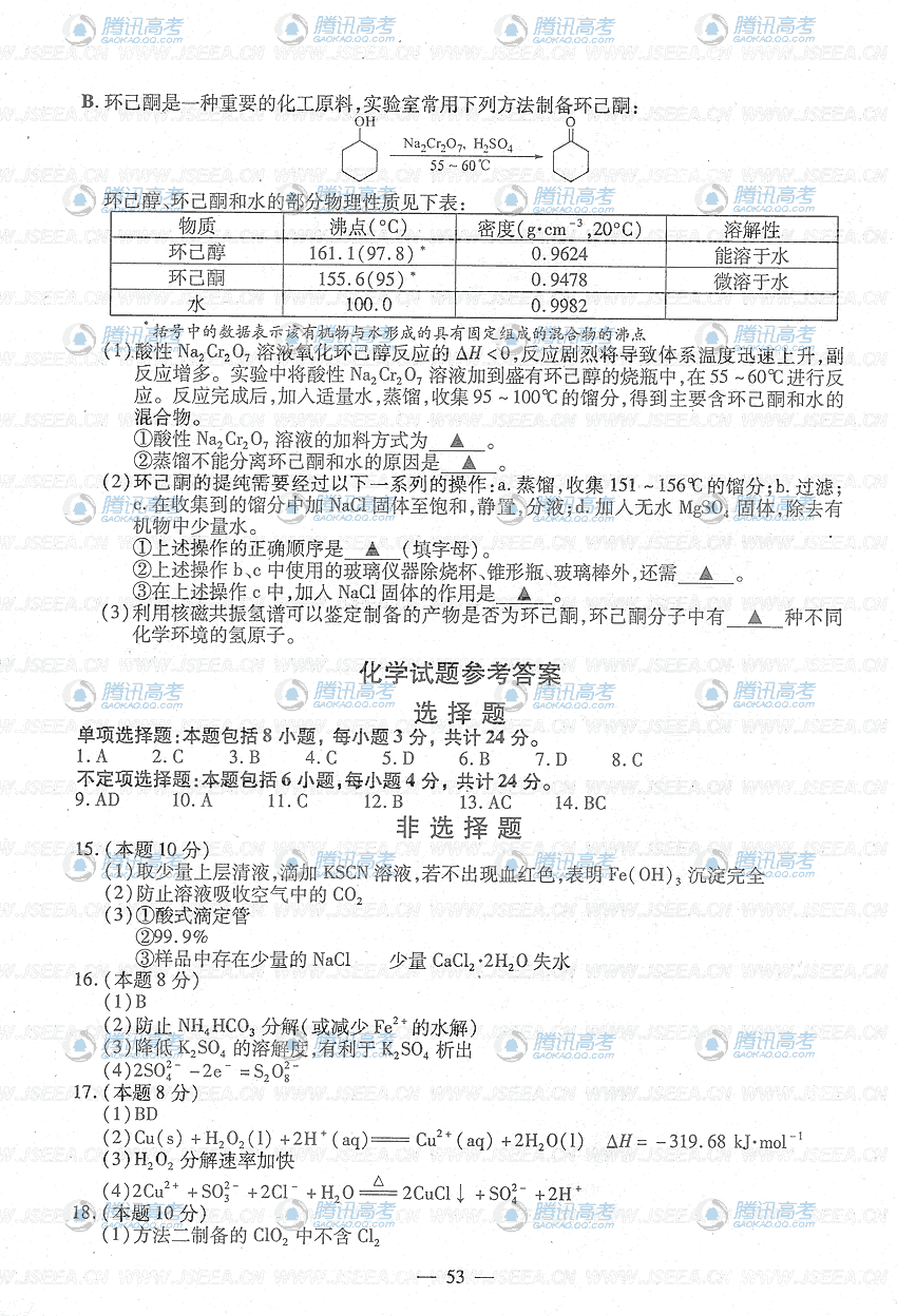 2009年江苏省高考化学试题卷及答案