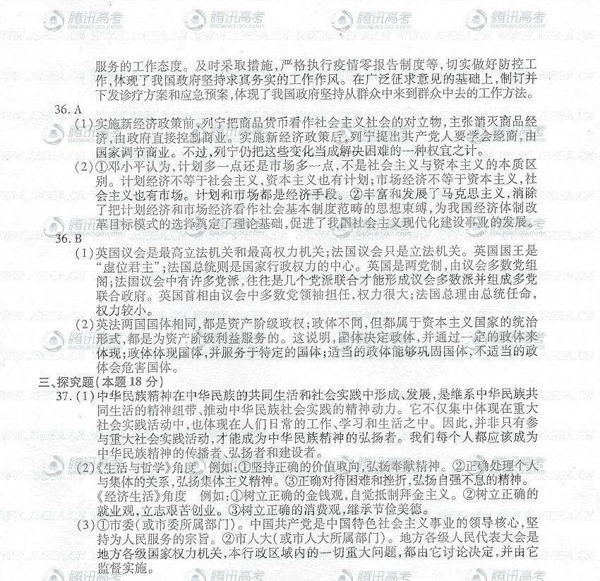 2009年江苏省高考政治试题卷及答案