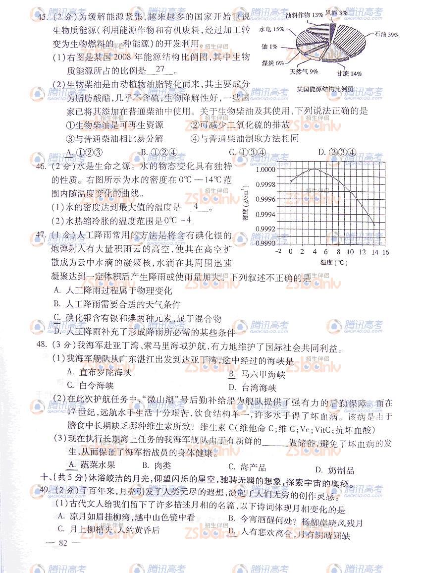 2009年山东高考卷基本能力试题答案