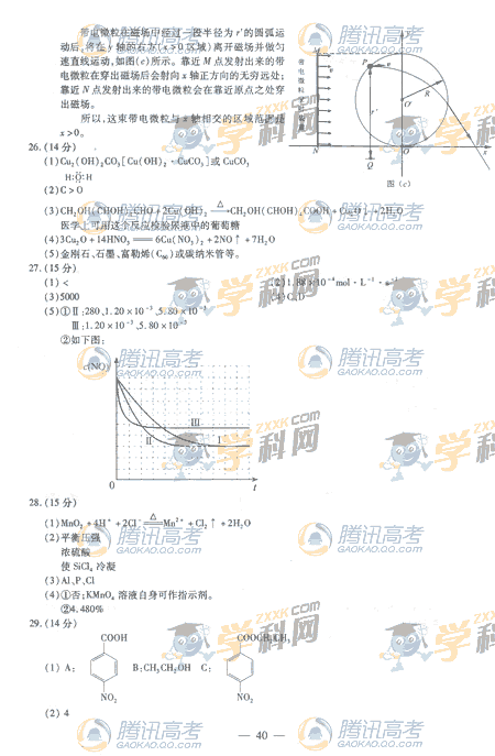 2009年浙江高考理综卷试题答案