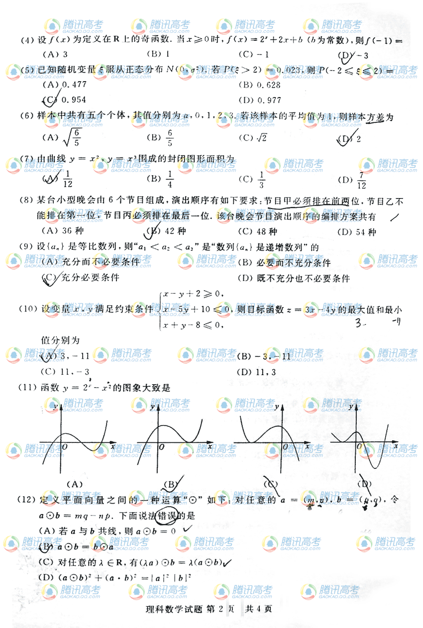 2010年高校招生全国统一考试理数(山东卷) 2010年山东高考理科数学试题及答案部分