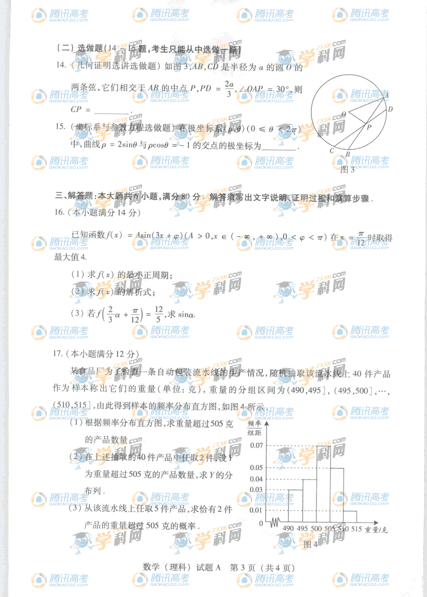 2010年全国1卷高考数学文科试题:河北 河南 山西 广西 西藏
