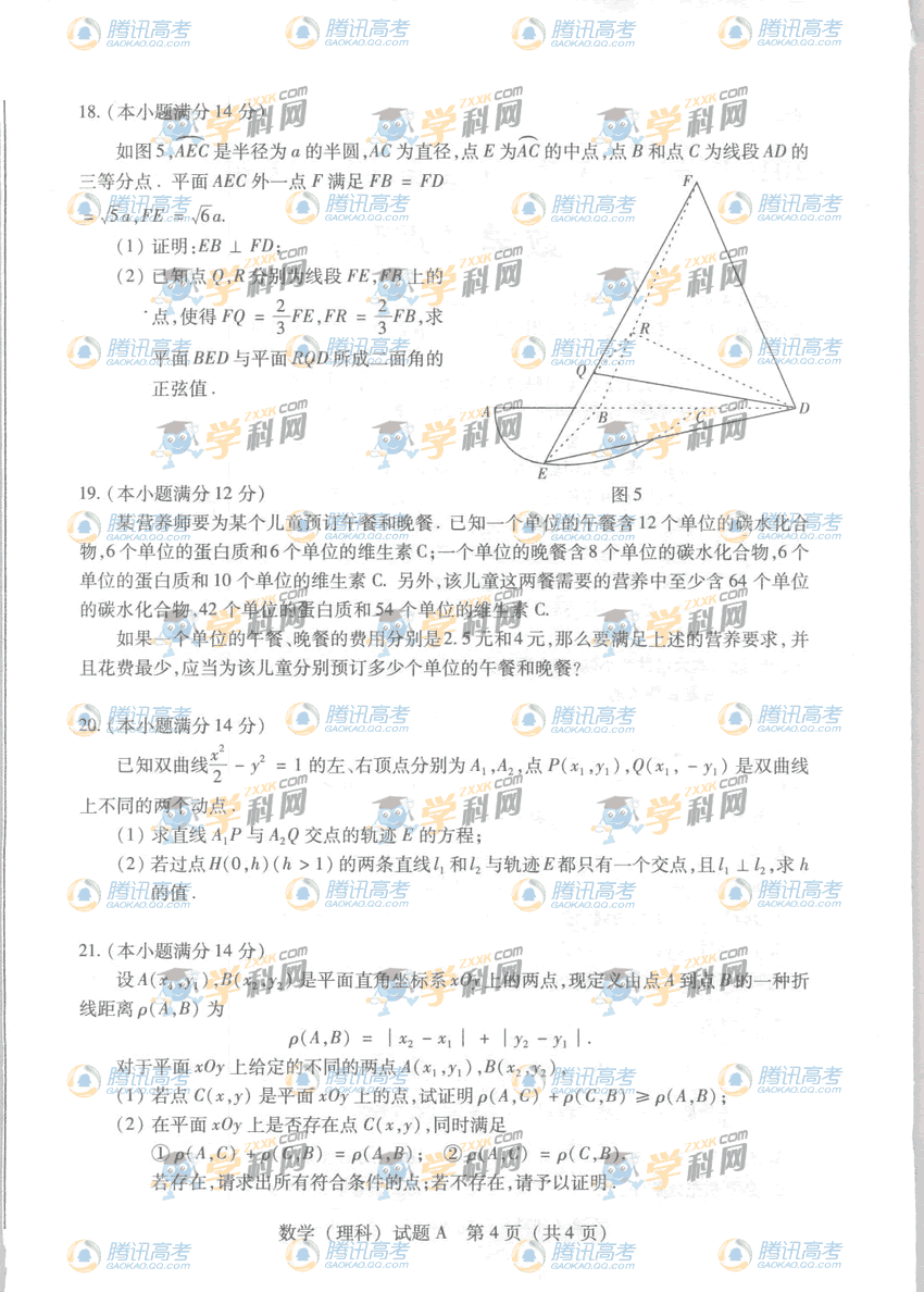 2010年广东省高考数学试题理科A卷