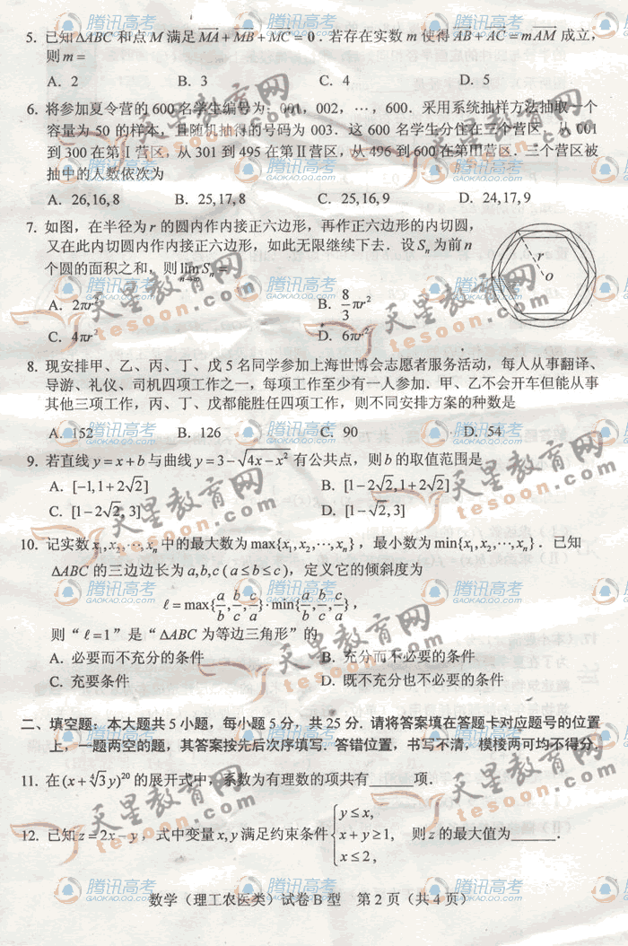 2010年高考数学试题试卷理科(河北 河南 山西 广西 西藏)