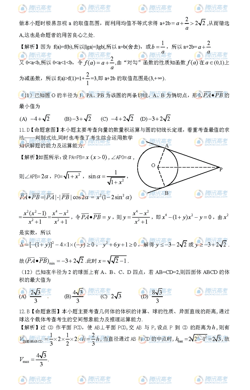 2010年高校招生考试理数试题(全国1卷)参考答案 河北 河南 山西 广西 西藏高考数学试题答案
