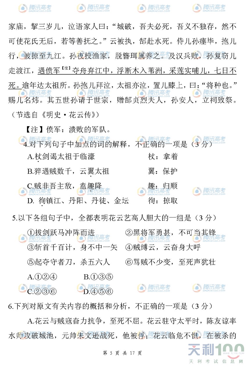 2010年陕西高考语文试题卷答案
