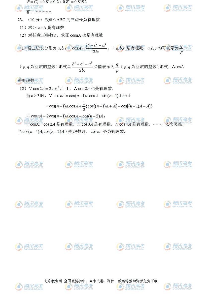2010年高校招生考试数学(江苏卷)参考答案 2010年江苏高考数学试题试卷答案