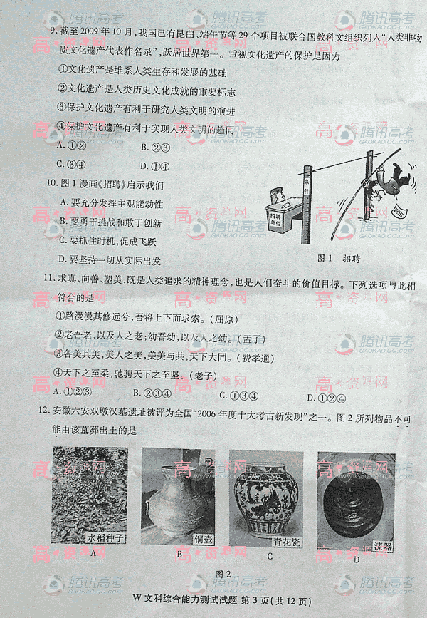 2010年高校招生全国统一考试文综(安徽卷) 2010年安徽高考文综试题试卷(文科综合)