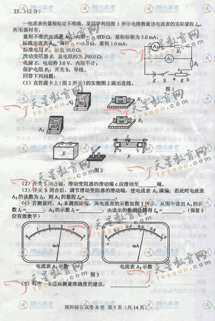 2010年高校招生全国统一考试理综(湖北卷) 2010年湖北高考理综试题卷(理科综合)