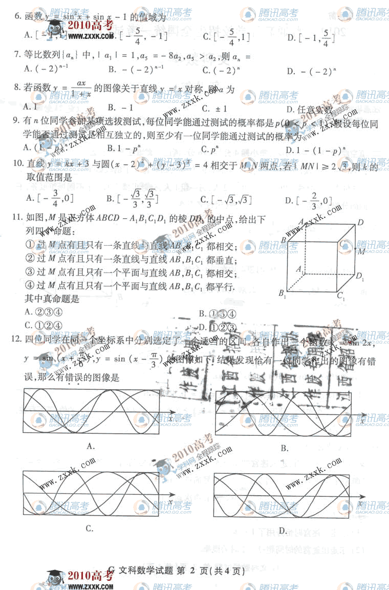 2010年江西高考数学文科试题卷