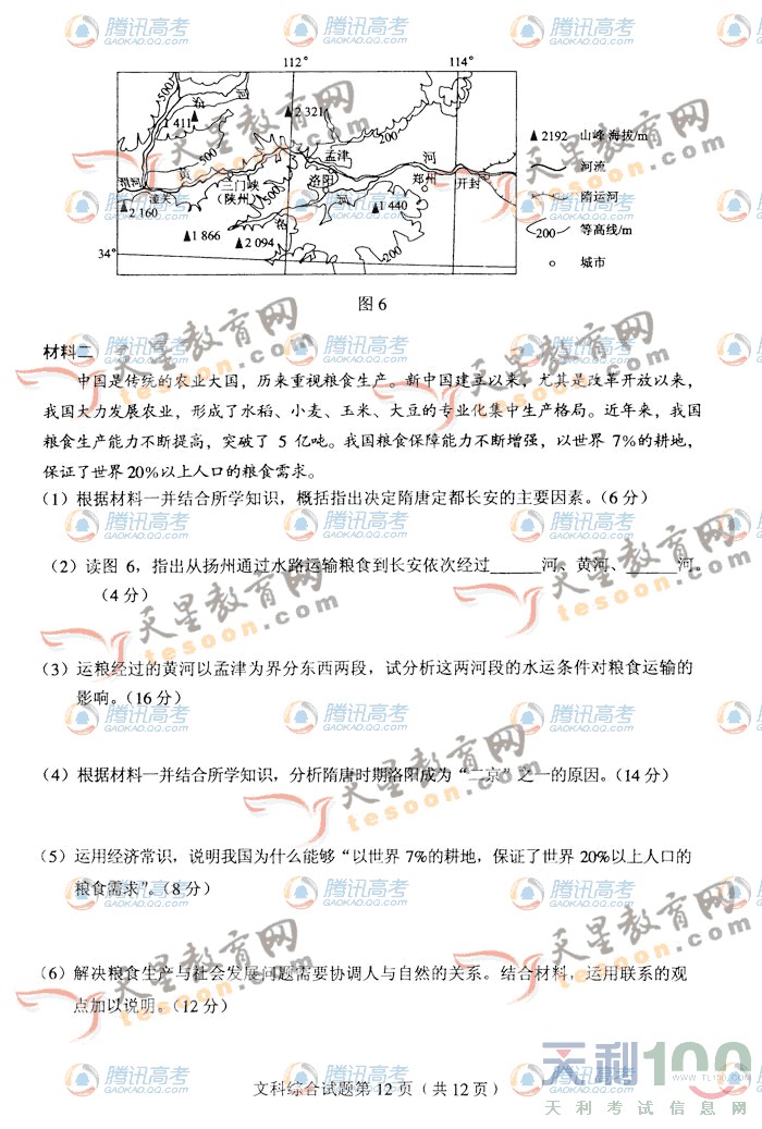 2010年安徽高考文综试题试卷(文科综合