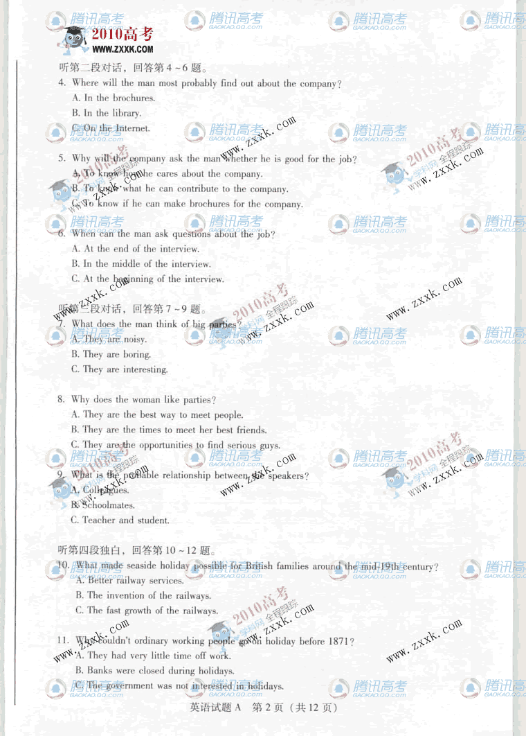 2010年广东A卷高考英语试题