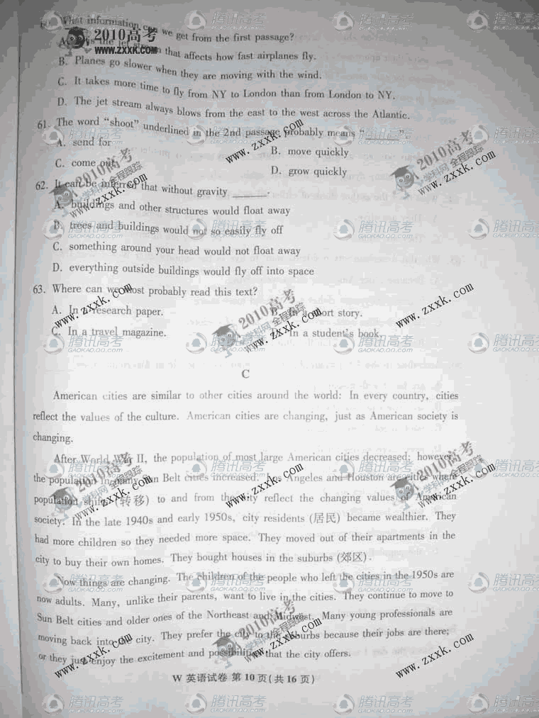 2010年河北 河南 山西 广西高考英语试题(全国1卷)