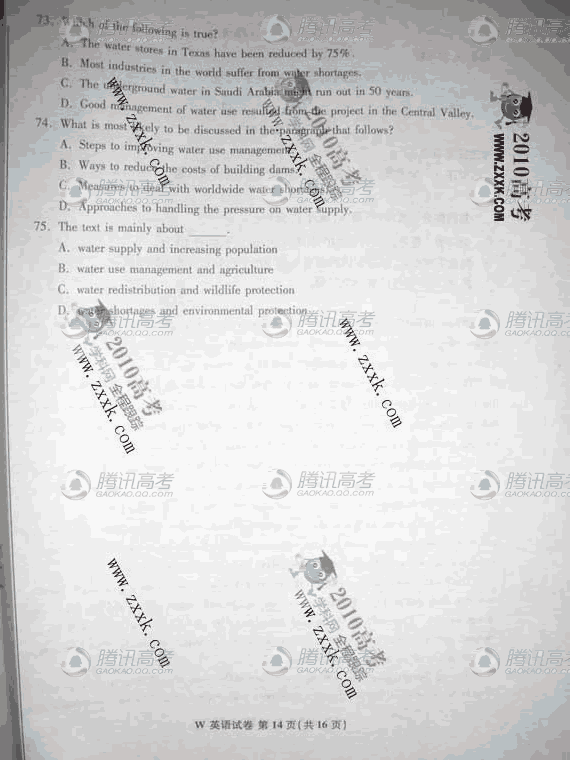 2010年河北 河南 山西 广西高考英语试题(全国1卷)