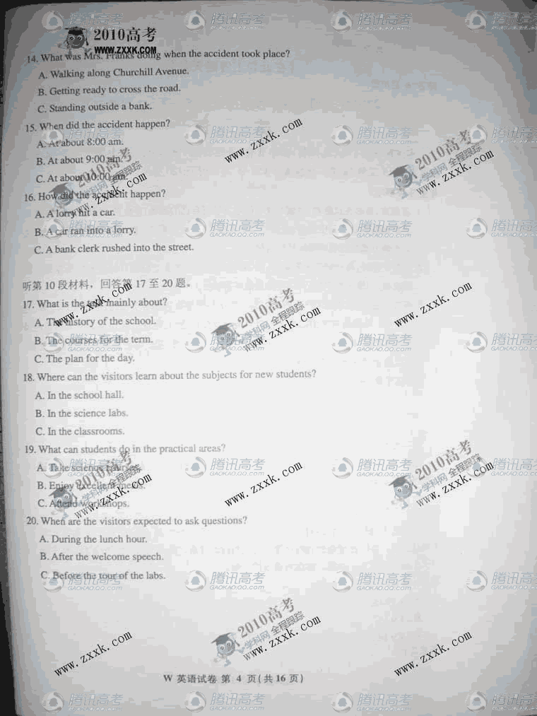 2010年河北 河南 山西 广西高考英语试题(全国1卷)