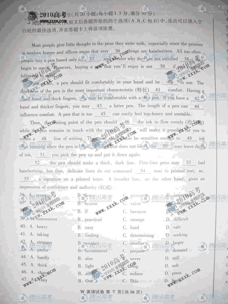 2010年河北 河南 山西 广西高考英语试题(全国1卷)