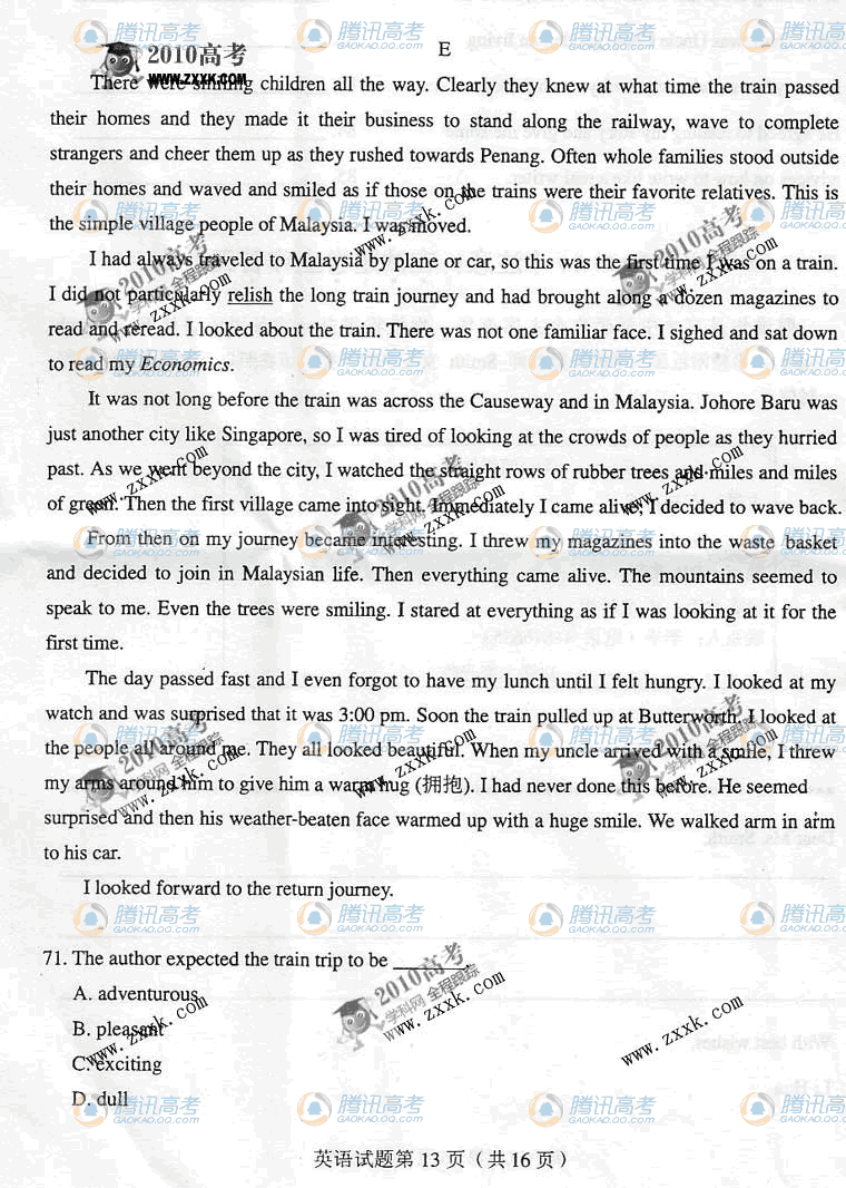 2010年河北 河南 山西 广西高考考试英语(全国1卷)