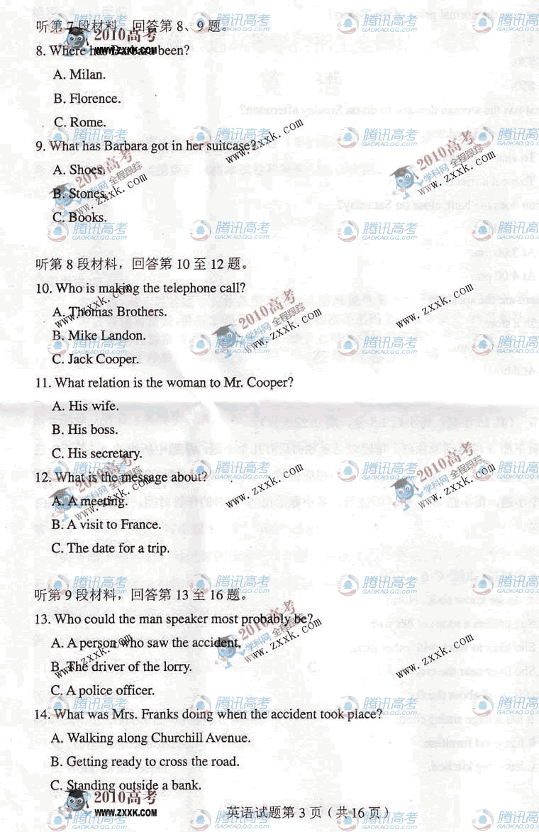 山东招生考试院对2010年高考英语试题分