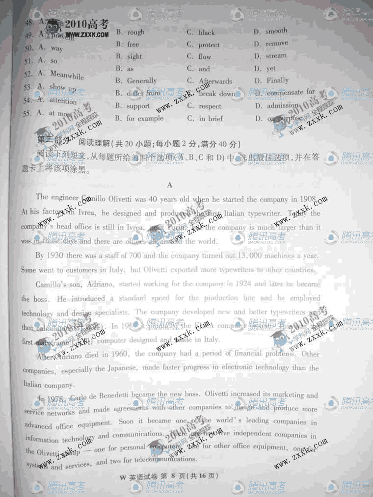 2010年河北 河南 山西 广西高考英语试题(全国1卷)