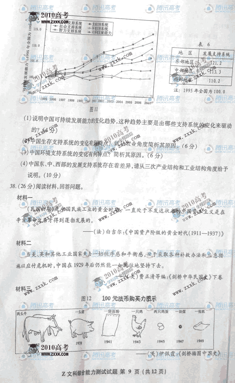 2010年浙江高考文综试题试卷 2010年高校招生全国统一考试文综(浙江卷)