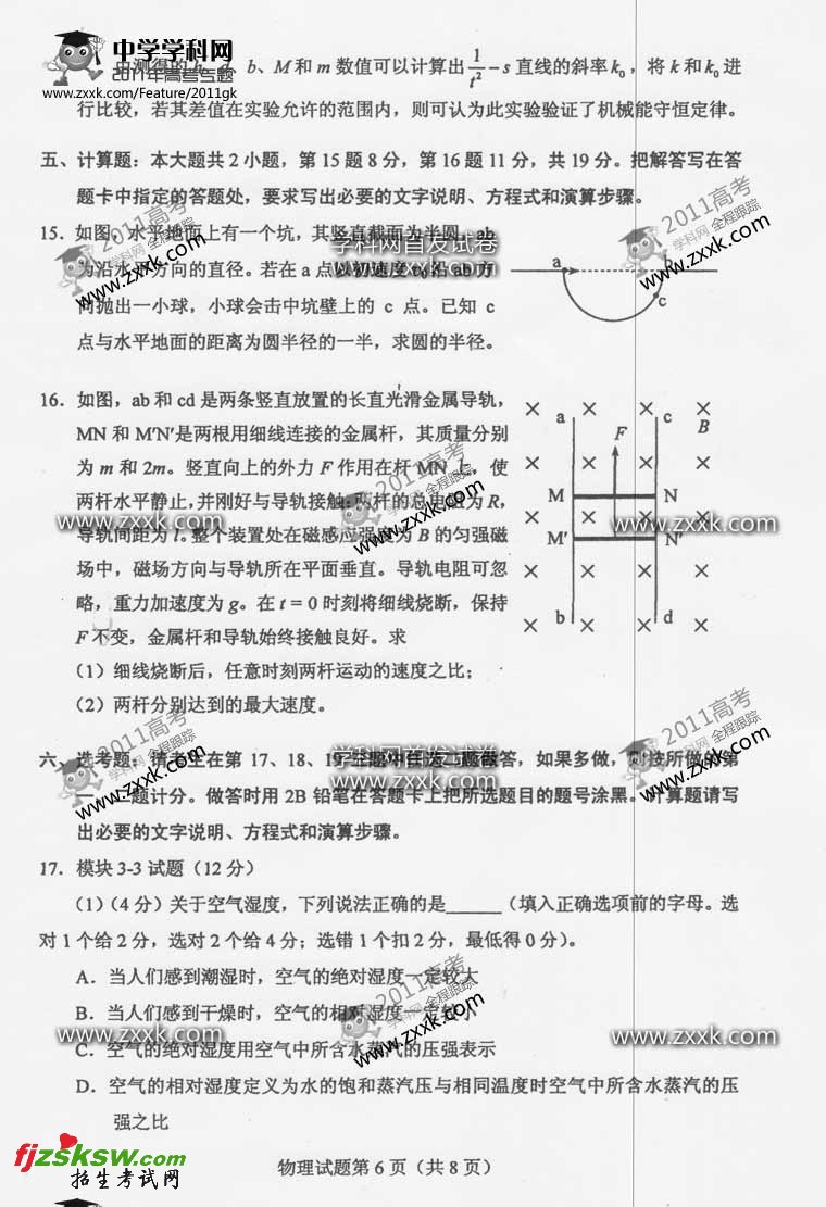 海南省2011年高考物理试题