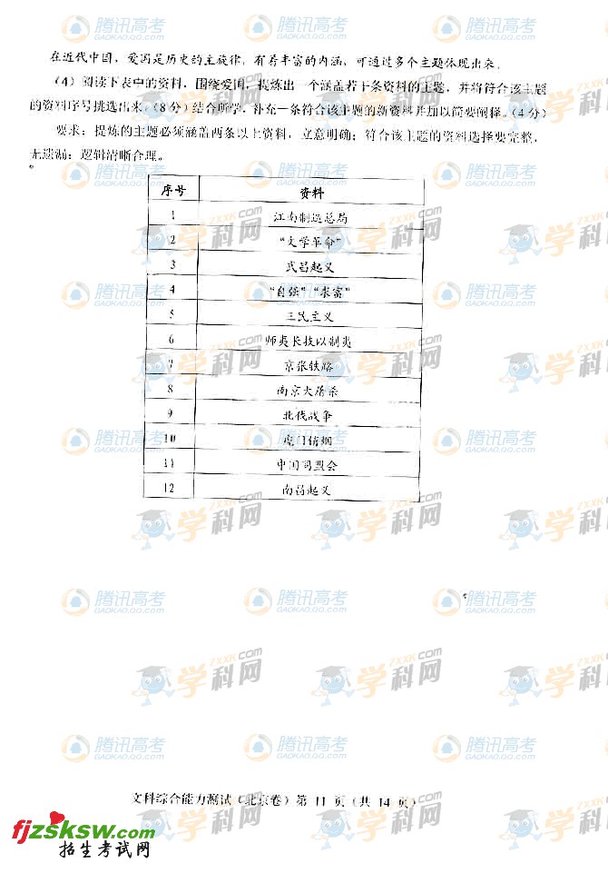 北京2011年高考文综试题