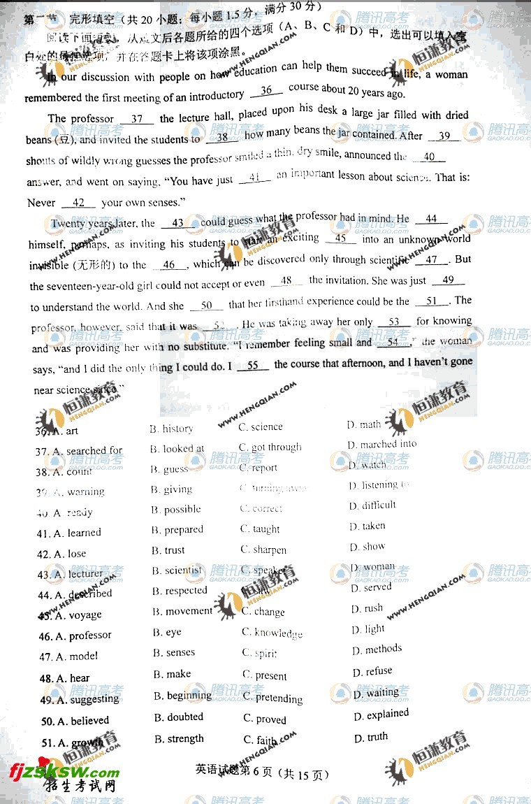 陕西2011年高考英语试题及答案