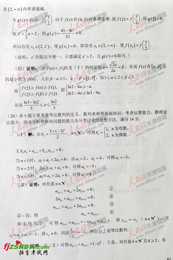 天津2011年高考理科数学试题及答案