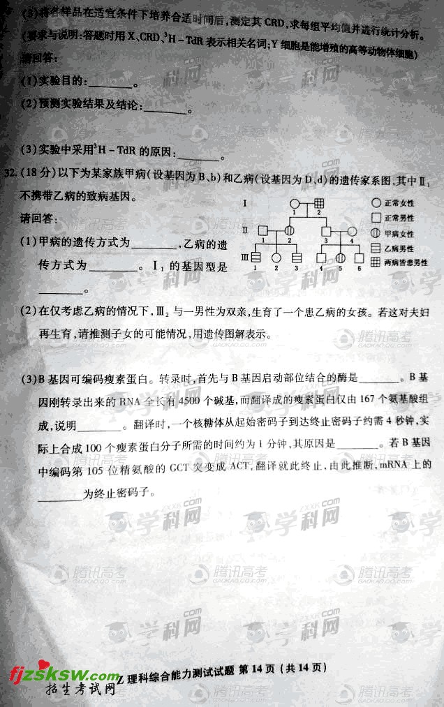 重庆2011年高考理综试题及答案