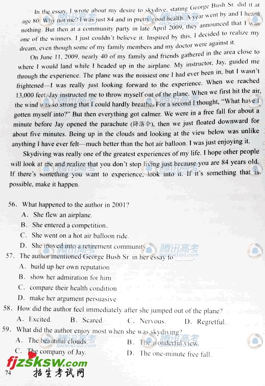 浙江2011年高考英语试题及答案