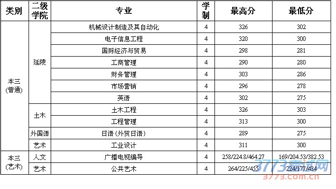 2013常州工学院延陵学院专转本录取分数线