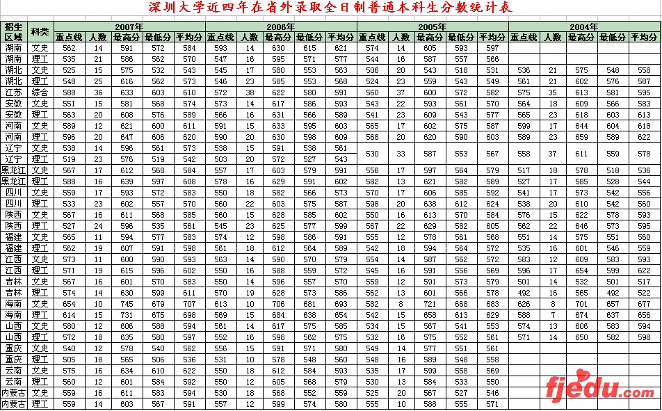 深圳大学2004-2007年录取分数线统计