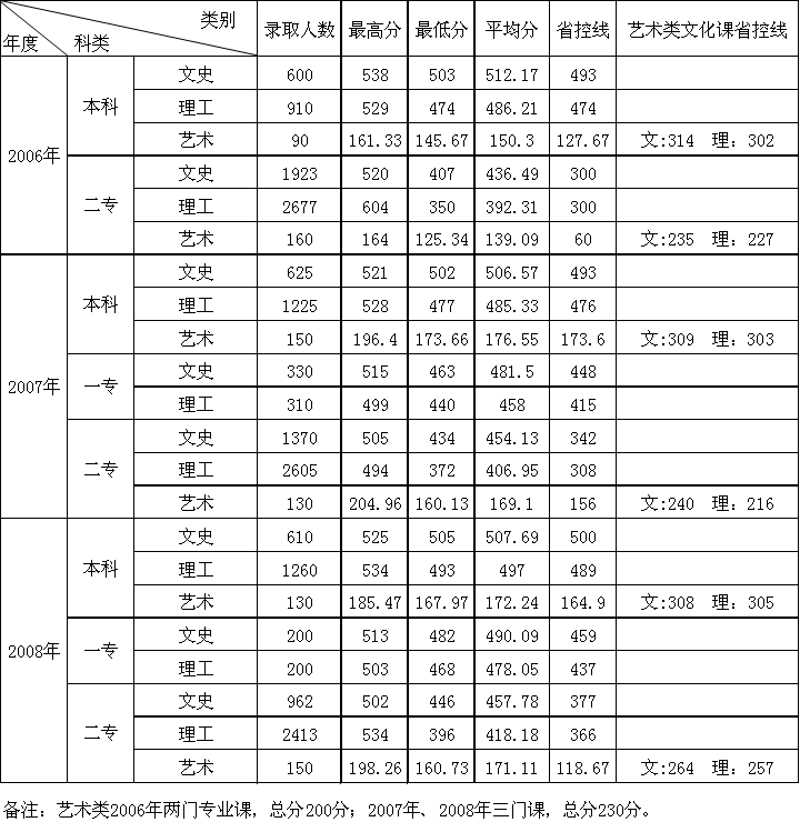 安徽新华学院2006-2008年安徽省录取情况一览表