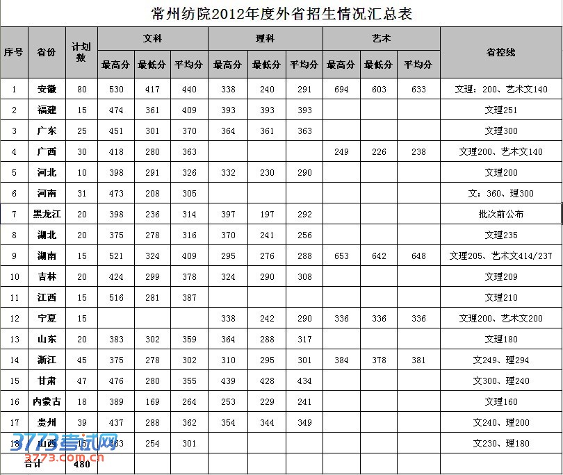 2009年常州纺织服装职业技术学院在外省招生专业及计划分布一览表