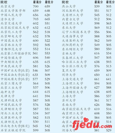 北大、清华、南开等仍是关注的焦点。文科方面,北大以录取最高分656分和最低分635分居第一,这两个分数均高出我市一本线100分左右。我市考生的优秀成绩让北大心动,北大在渝原本只投放了24个计划,但实际录取达29人。