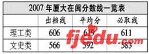 今年厦大在闽的必取分数线昨日也确定,理工类611分,文史类583分。所谓的必取线指的是如果考生文、理投档分达到上述分数,并且愿意服从调剂,体检等合格,就一定会被厦大录取,只是录取专业满意度高低的问题。