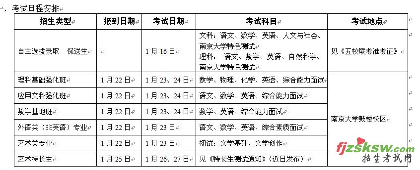 南京大学2010年自主招生各类考试时间公布如下,有关详细测试通知将于近日发布,请大家关注五校联考报名网站和南京大学本科招生网有关信息