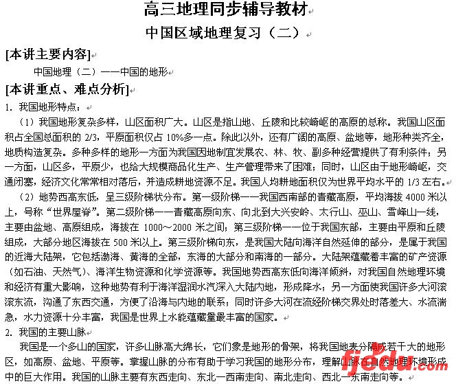 高三地理同步辅导教材中国区域地理复习(一)