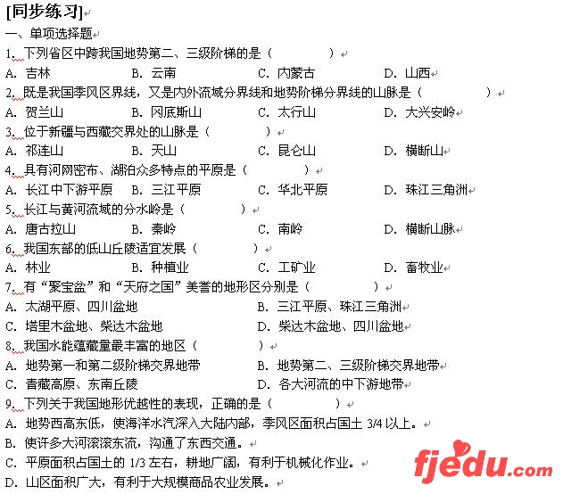 高考地理习题