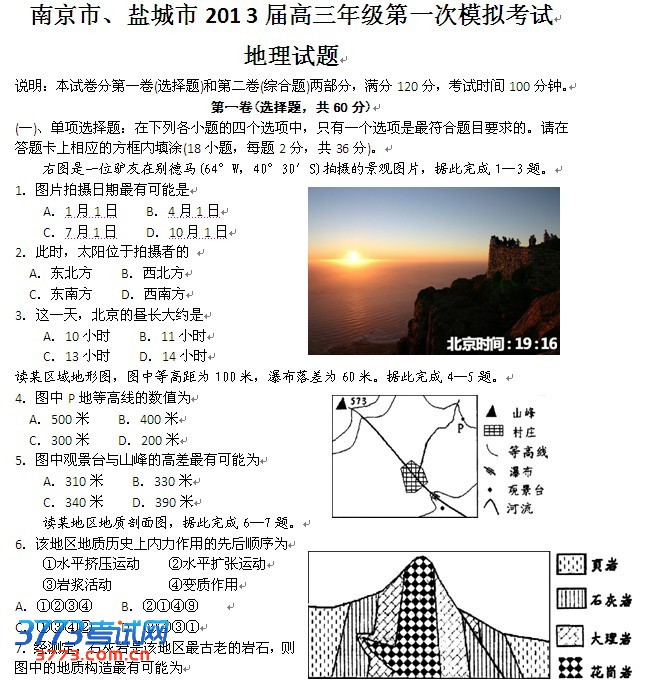 2013年南京市盐城市高三地理一模考试试题:点击免费下载。