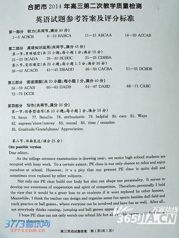 2014安徽安庆二模分数线:文科一本522理科一本465