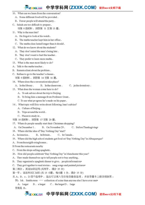 西南师大附中高2009级第六次月考-英语